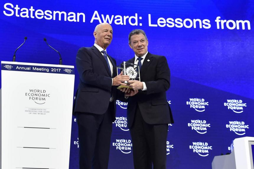 18 enero, Davos, Suiza.- El reconocimiento fue entregado durante la realización del panel ‘Construyendo una Colombia en paz’ organizado por el Foro Económico Mundial.